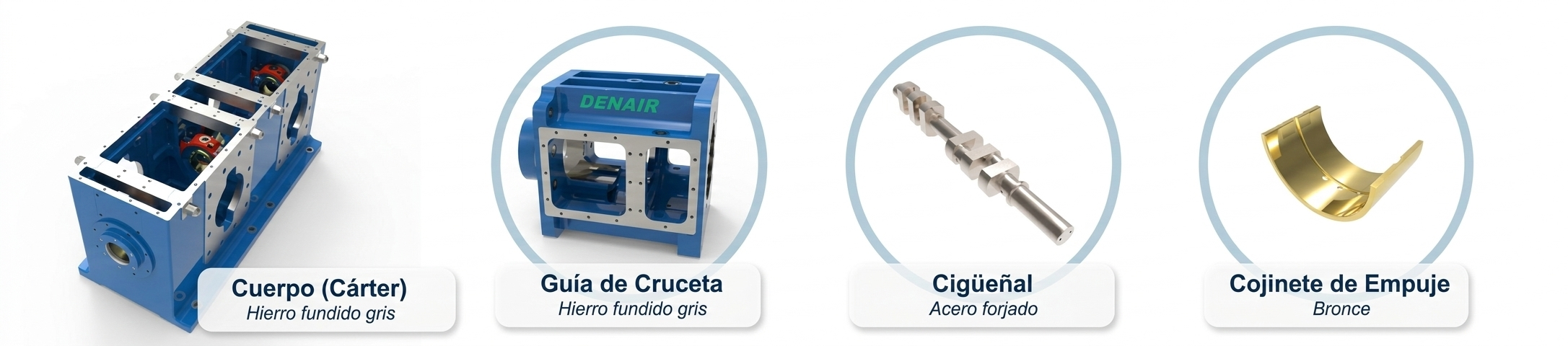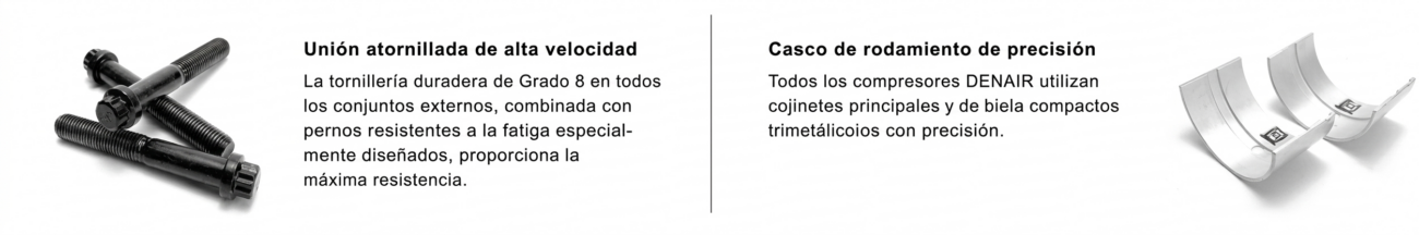Los compresores se caracterizan por el uso de bielas de hierro dúctil duraderas con una tapa de cuatro pernos unida al cuerpo de viga en I de alta resistencia.