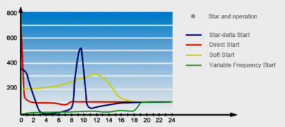 Método de arranque optimizado: utiliza un convertidor de frecuencia para una aceleración lenta, asegurando un arranque estable y evitando por completo los picos de corriente en comparación con los métodos tradicionales.