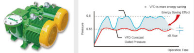 Seguimiento de presión preciso: Realiza un seguimiento rápido de los cambios de presión, manteniendo las fluctuaciones dentro de ±0.1 bar y optimizando el uso de energía para entregar la cantidad exacta de aire requerido.
